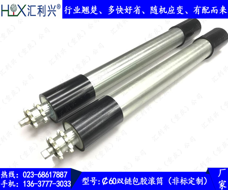 產品名稱:¢60雙鏈包膠滾筒(非標定制) 產品型號:非標定制