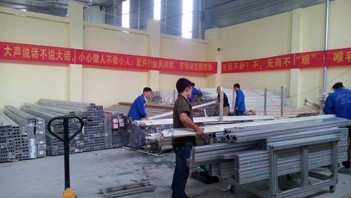 今日(2016.4.29)是5.1節放假的前一天,我司將有大批量產品出貨(精益管,鋁型材及配件);為了客戶您假后勝利開展工作,我司全員不顧中午休息時間,分工協作,有的切精益管,有的切鋁型材,有的攻牙,有的打包......雖說春色迷人,我們的工作風采也絕不遜色。(組圖)