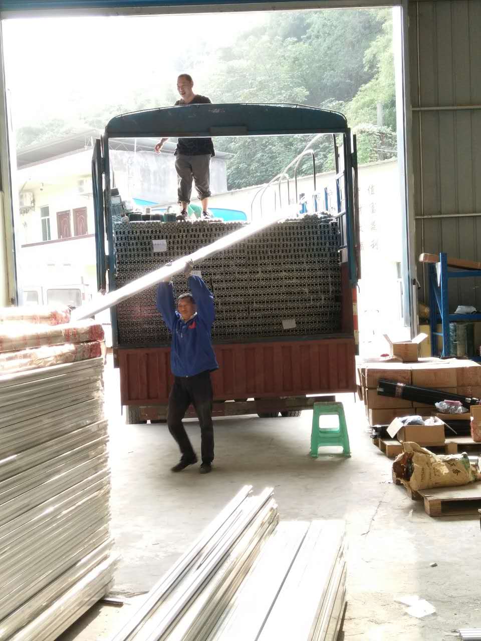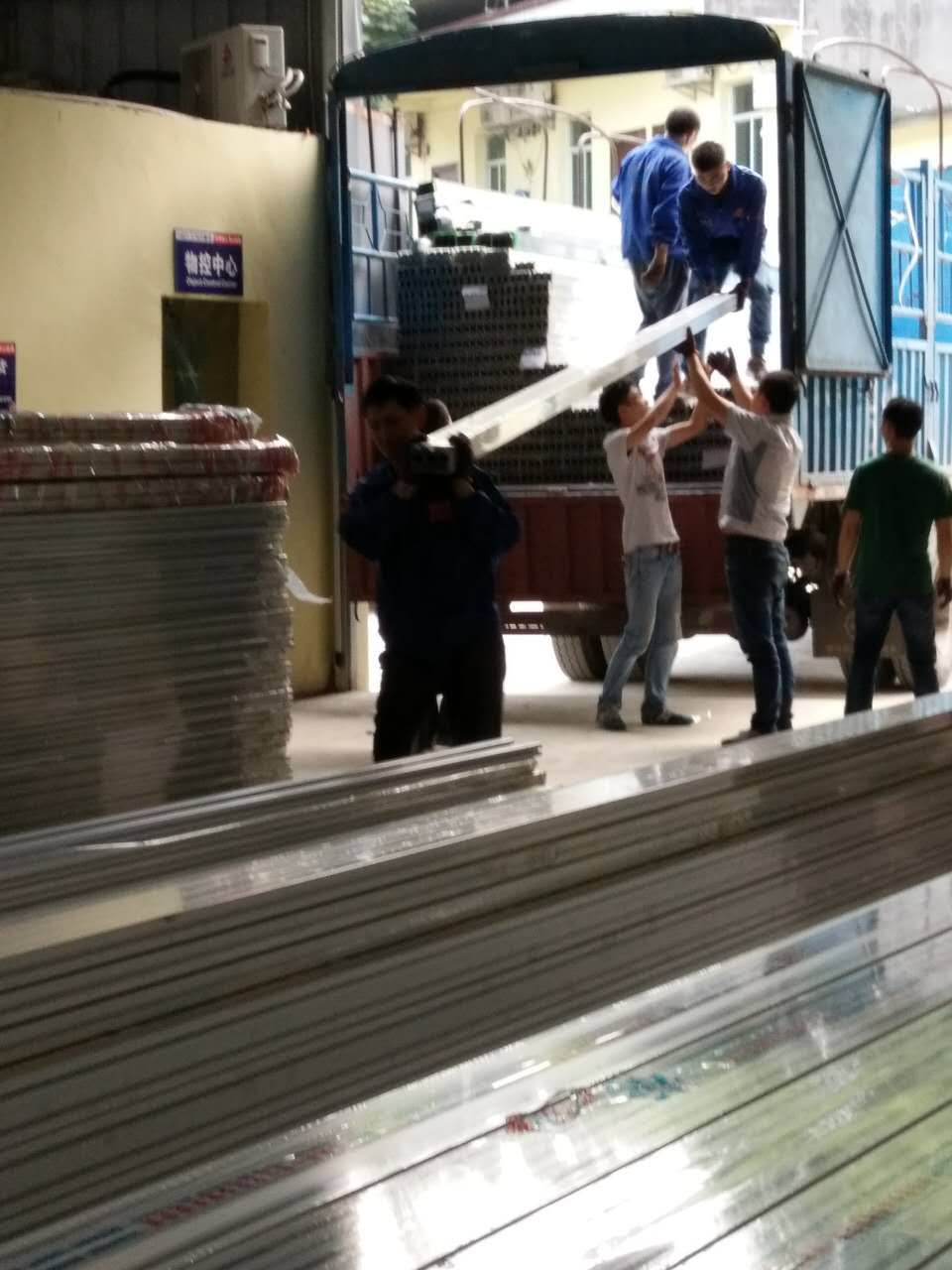 匯利興戰(zhàn)士齊心協(xié)力一同卸下鋁型材,滿大車的鋁型材轉(zhuǎn)間就轉(zhuǎn)移至倉(cāng)庫(kù)。(團(tuán)結(jié)就是力量)