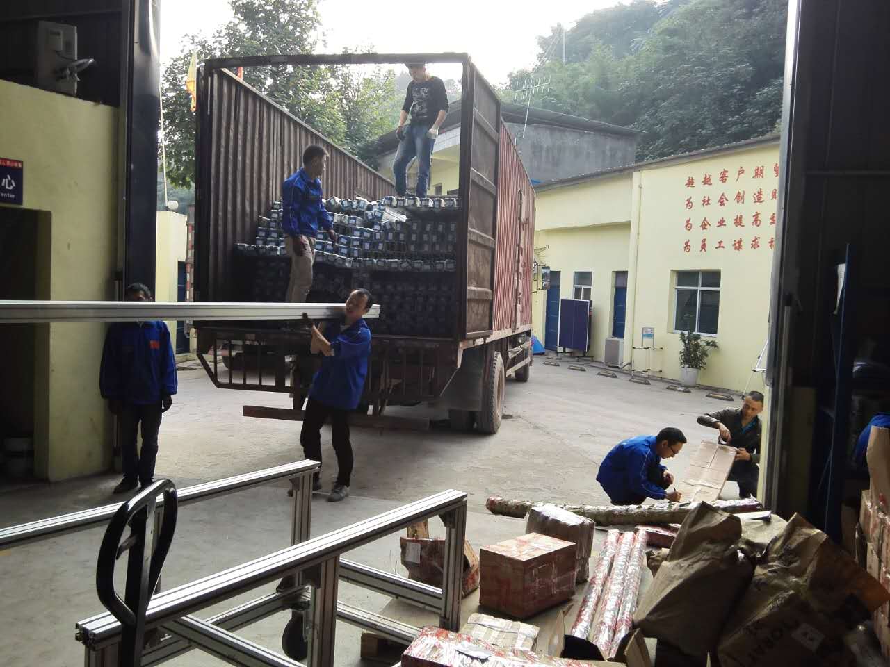 碩果累累、五谷豐登。11月4日,我司大量(100*118組裝線倍速鏈)鋁型材到貨,進而出貨。一邊搬至鋁型材到倉庫,一邊就地在院落進行打包出貨,鉆銑室、切割室工作人員也從未停歇半秒,只為更快更精準將貨物送至客戶手中。全心、全意、全力、全面為每一位客戶服務,這就是匯興智造獨有的匠心精神且產品有上千種,配件和鋁材應有盡有,全方位采購。