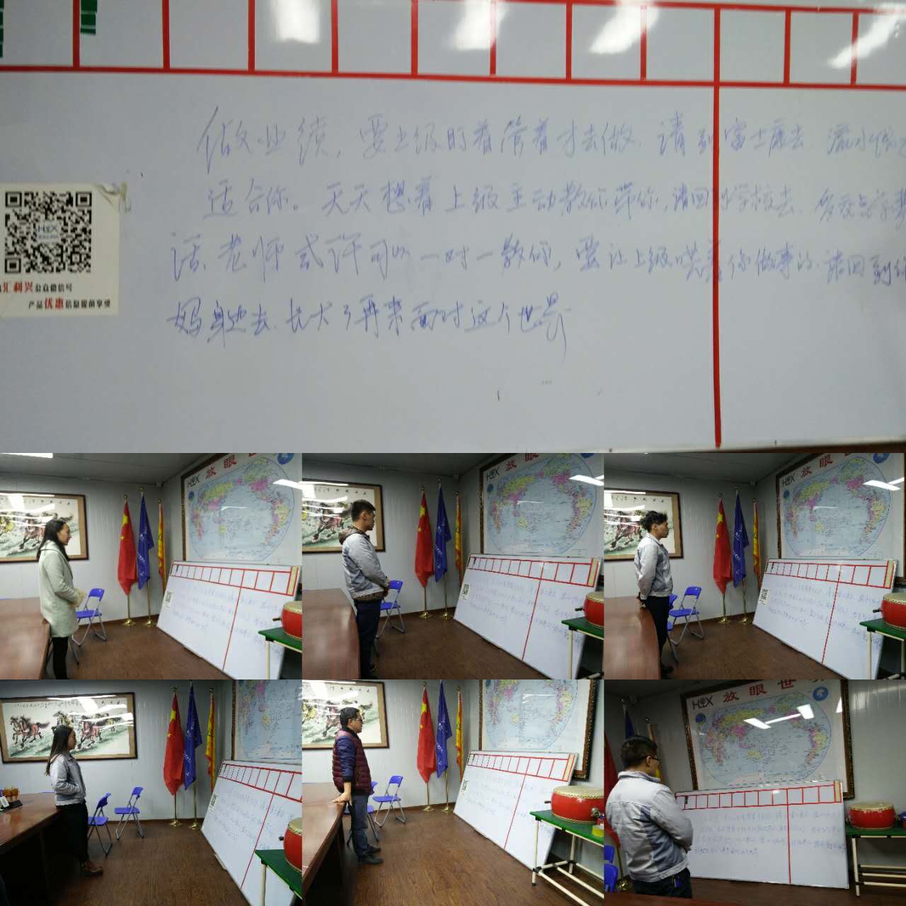 會上,主要以二個游戲為主,分別是互助闖關(guān)、警言宣讀;其中互助闖關(guān)是兩人為一組合,分別是三個小組(A組:蒲曾紅、石樂歡,B組:張國桃、陳吉坤,C組:曾濤、鄧筵暉),游戲規(guī)則:一個人為戴眼罩的搭檔指引路線而且不能觸碰到路線的障礙反之淘汰且兩人互助進行,用時最少的組獲勝且獲得相應(yīng)的獎勵。經(jīng)過幾番戰(zhàn)斗,ABC三組成員的用時終于知曉(A組:317.5分、B組:232.1分、C組:269.8分)在游戲中ABC三組成員,彼此信任、相互攙扶共同完成心目中的目標且打敗所謂的障礙并取得勝利(最終B組獲勝)。然在此次游戲中最主要目的是考驗隊友間合作度、彼此的信任度。其二警言宣讀,銷售部全體人員單個大聲宣讀。(組圖) 互助闖關(guān)游戲進行圖集 互助闖關(guān)游戲逐步接近尾聲,又進行第二項游戲銷售部全體人員逐個對警言進行了宣讀,其目的反思自己業(yè)績應(yīng)該怎樣去做,“主動性”。(組圖) 警言宣讀圖集 茶話會開展也接近末尾,胡明建副總及銷售部全體人員對2016年在工作中自己所面臨的阻礙、未發(fā)揮出的潛能及需要改善的工作作風、每個人都表達了自己的問題及想法。其次各組成員對游戲的玩耍作了相應(yīng)的感想,A組成員:既然選擇了隊友,那么一定要選擇相信他;B組成員:一個人無法更好的完成一件事,需要大家的配合其次一定要有主動性,主動去爭取,必須要團結(jié);C組:人生需要一個貴人向航燈為你指引前方,其二團隊合作非常重要,且要相互信任,其三勇敢的向前邁一步,遇困難永不退縮。