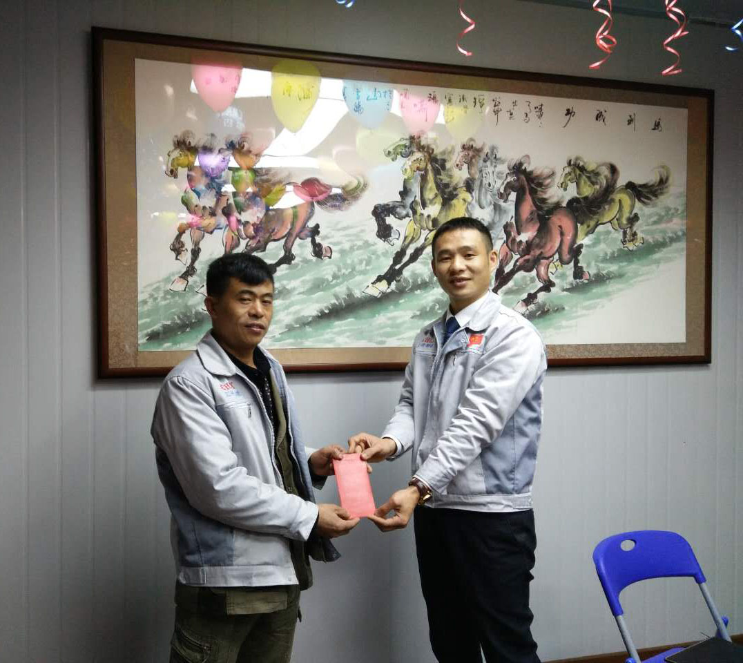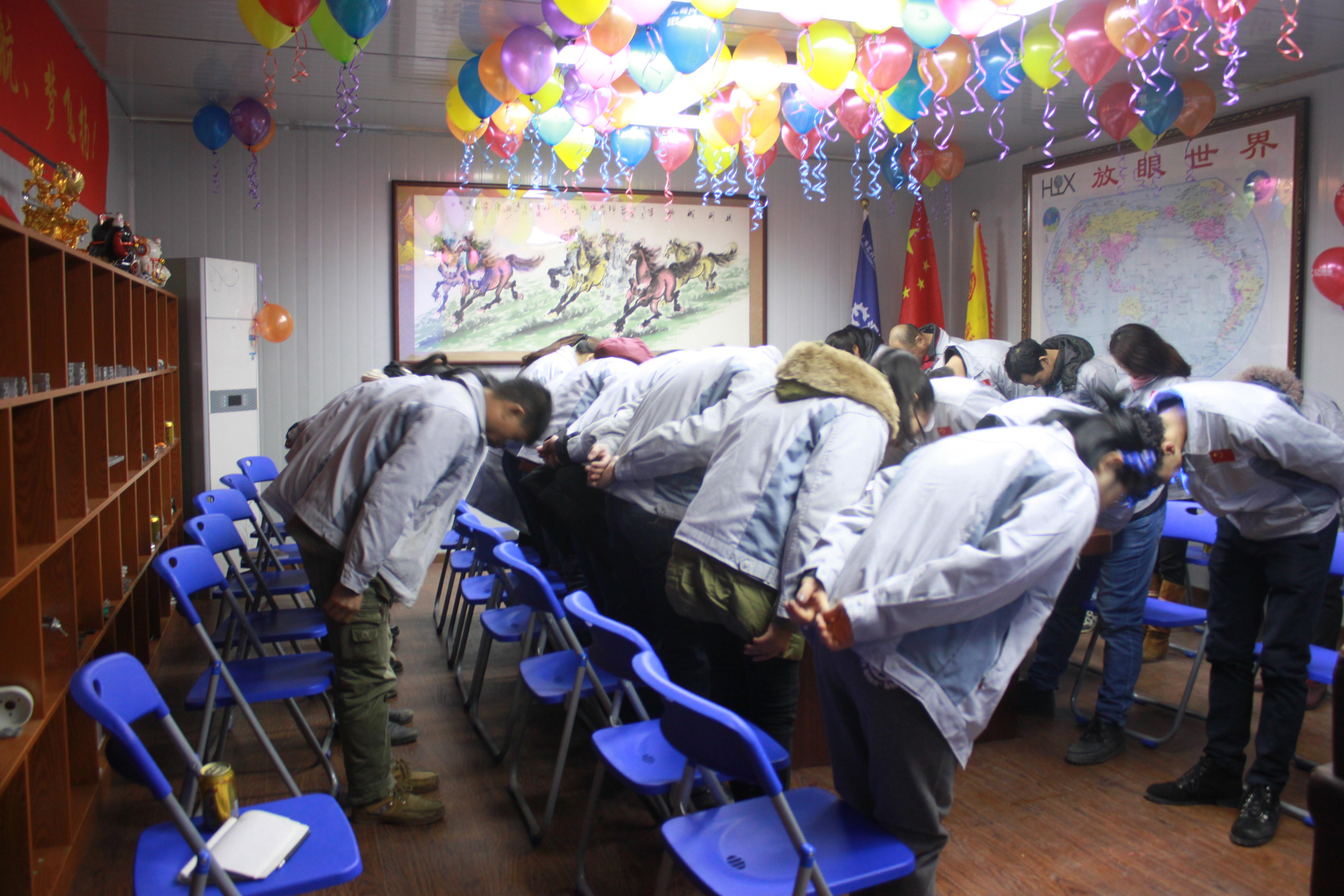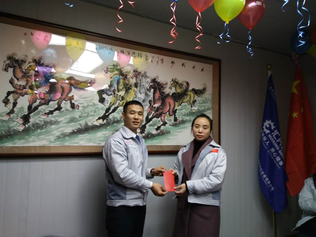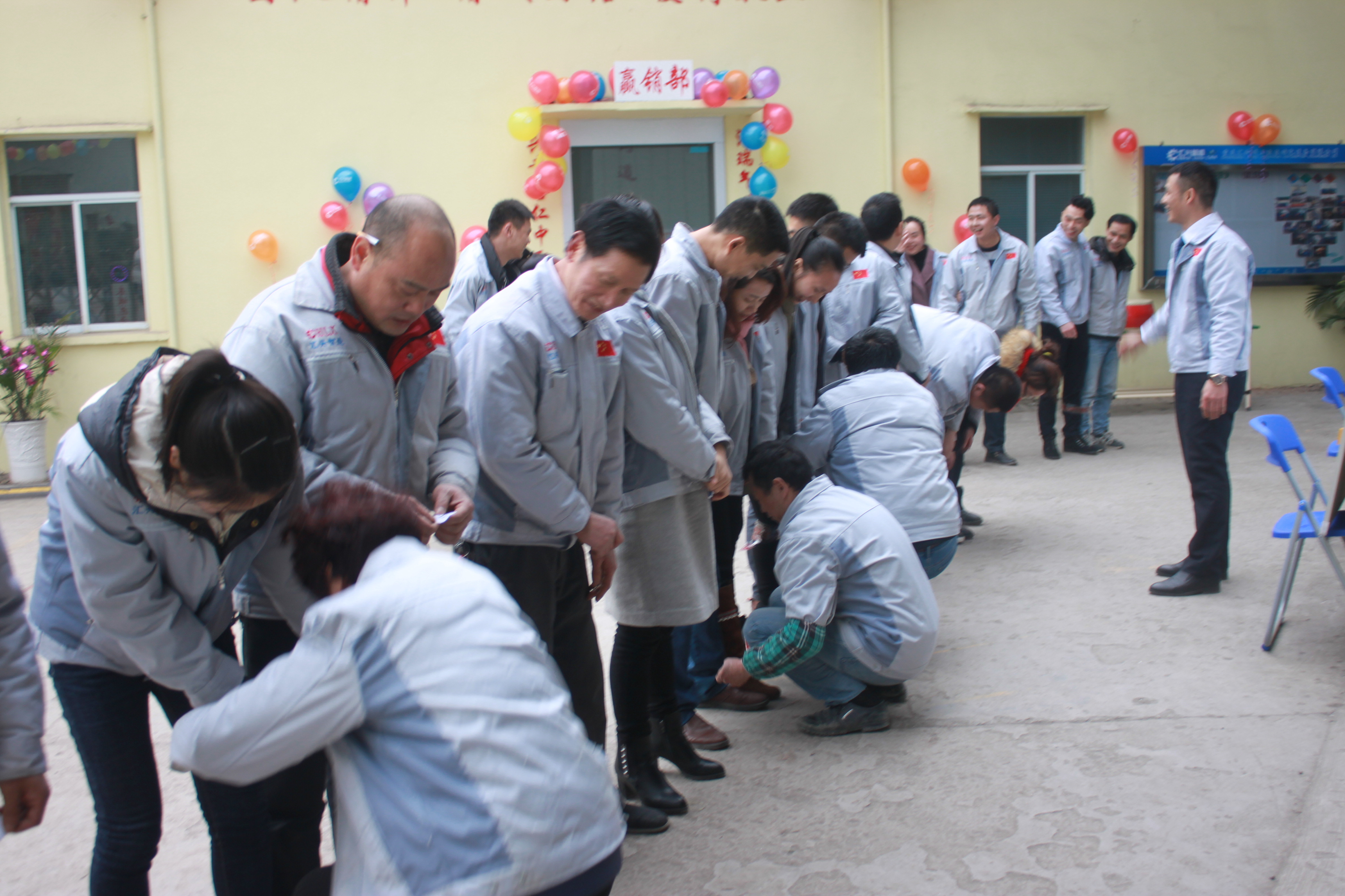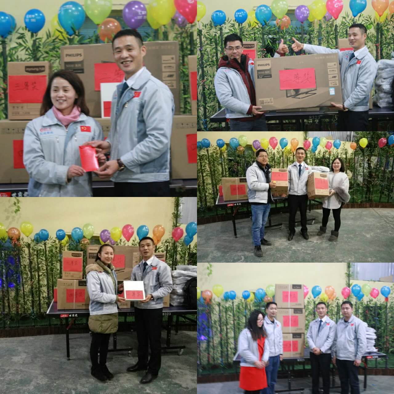 (眾人一條心)游戲準備中,裁判們?yōu)檫x手們系上同心交織的紐帶 匯利興女戰(zhàn)士敲擊士鼓,士氣比武器更重要 會議召開前對企業(yè)三道(人道、孝道、商道)行三鞠躬 年度盛會由主持人劉園園上臺正式拉開序幕,會議前我們一起回眸2016年工作縮影,回眸了與匯利興大家庭的交集。 會議上,胡總經(jīng)理表示:2017年新起點的一系列規(guī)章制度、員工薪酬福利制度、員工職位考核制度,回首了2016年匯利興的成長與發(fā)展,3月14日公司搬址、傳祺戰(zhàn)車加入、倉儲及系統(tǒng)完善,2017年展望與目標。同時表示感謝大家在2016年中的包容與支持同時也相信大家在2017年能一起攜手完成我們的目標及挑戰(zhàn)。此后各部門代表發(fā)言總結(jié)2016年展望及2017年每月業(yè)績目標。 匯利興全體戰(zhàn)士一起回眸2016年與匯利興大家庭的交集 隨著年會的氣氛越來越濃厚,接下來由胡總經(jīng)理一一頒發(fā)獎金及揭曉年會大獎獲者。獎金頒發(fā):最佳付出獎、最佳責任獎分別是劉元平與石樂歡戰(zhàn)士,在此感謝兩位家人的奉獻與付出。 在你們愛家的同時匯利興這個家會更加愛你們。 胡偉路總經(jīng)理與“最佳責任獎”榮獲者石樂歡同框合影 胡偉路總經(jīng)理與“最佳付出獎”榮獲者劉元平同框合影 年會大獎揭曉,胡總經(jīng)理一一揭曉大獎獲者,此次大獎由26個英文字母之一相繼而出,獲獎組圖以下: 胡偉路總經(jīng)理與年度盛會大獎獲得者合影圖(特等獎、一等獎、二等獎、三等獎、四等獎) 年度盛典活動逐漸接近尾聲,活動以“畫鼻子”游戲拉開帷幕。即使看不見光明,只要心中有信仰、信念那也將是一個通往前方的航燈。 匯利興大家庭年會團圓飯圖貌 隨著年飯的結(jié)束,2016年盛會圓滿結(jié)束。回首過去,放眼未來,2016年已逝去的,我們不再留戀,2017年的到來我們?nèi)ビ樱灰驗樵谛碌囊荒暧形覀兊哪繕思皦粝胛覀円煌?chuàng)造去實現(xiàn)它,實現(xiàn)中國智能裝備全產(chǎn)業(yè)鏈集成智造標桿,繼續(xù)引領(lǐng)行業(yè)的發(fā)展。同時在此感恩所有對匯利興關(guān)懷及支持過的您們,正是因為有了您們的支持才得以讓匯利興茁壯成長,才能讓匯利興在行業(yè)道路上越走越穩(wěn)。感恩您們......