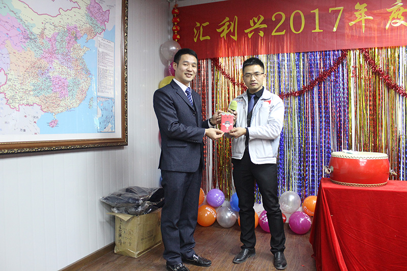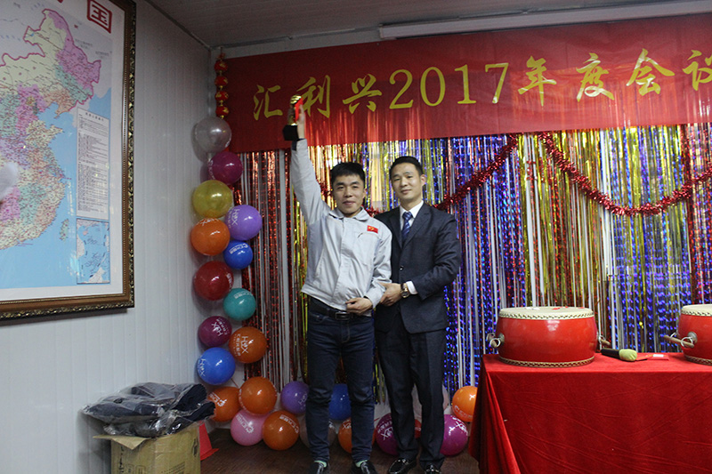 隨年會時間的推移,匯利興(重慶)公司2017年度會議已逐步進入下篇階段:會上,胡偉路總經理表示,在2017年里通過各部門的共同努力及奮斗下逐步接近我們的目標同時表示在整個年度中各部門配合力度有待提高、物控部及采購部等部門工作進度有待提高等進一步談到2018年匯利興整體目標及公司的發展方向力爭開源節流,倍增業績!然后對最佳團隊獎、最佳銷售冠軍獎的頒發。