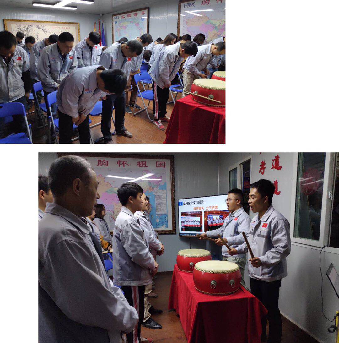 會議第二項議程,企業文化的展示。全體匯興人整肅衣冠對匯興人倍加推崇的“三道文化”(孝道、商道、人道)鄭重地鞠躬,莊嚴宣誓企業愿景:“成為全球領先的智能自動化產業鏈集成服務商”,企業使命:做受尊敬的好人,造受尊敬的產品,辦受尊敬的企業,建受尊敬的平臺,企業精神“用情做人、用心做事”,團隊精神“忠誠團結、勤奮進取”,工匠精神:創于手、精于工、智于器、匠于心、品于行,行為準則:口中有德、目中有人、手中有技、心中有愛、行中有善,職業準則:對工作熱臉、對同事笑臉、對錯誤紅臉、對浪費黑臉、對榮譽爭臉。隨后二位核心精英擊士氣鼓,士氣比武器更重要,現場氣氛熱烈、振奮人心。