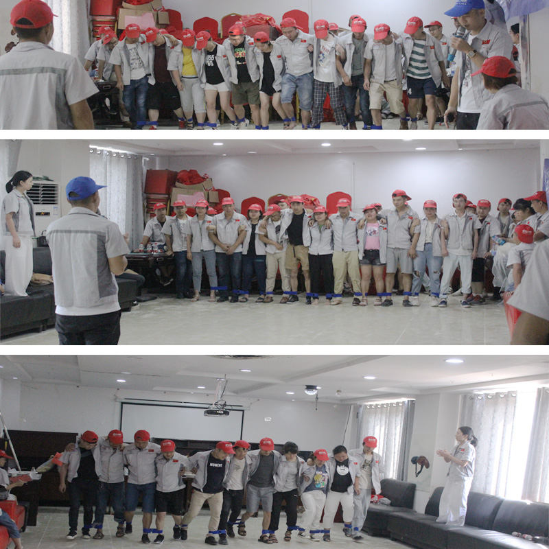 隨后在大家的強烈要求下,全體人員集體來一次“坐地而起”的游戲,挑戰(zhàn)自我、挑戰(zhàn)極限。大家肩靠肩、手挽手,同心協(xié)力一起發(fā)力,當(dāng)然這次并沒有像小組賽那樣順利,一會兒這邊人起來,一會兒另一邊的人沒有起來,這樣反復(fù)經(jīng)過一次又一次的嘗試,大家相互鼓勵、堅持及努力,不斷的修正及解決存在的問題下,最終在第五次的嘗試下,集體以7秒的時間成功取得勝利,全員統(tǒng)一都站了起來。在那一刻全員的心都是沸騰的,不停的在為團隊鼓掌為自己鼓掌,同時也讓大家明白了一個道理,無論遇到任何事,都要不斷地去改變、修正、堅持、堅持再堅持,因為成功往往就是再堅持一下。