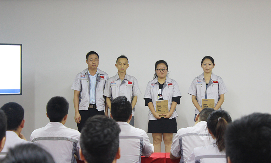 會議第一項議程,新員工入職歡迎儀式。一個企業的發展注定離不開新鮮血液的注入、新活力的輸入,由徐總親自為新入員工頒發紀念品,希望本月新加入的家人們能在自己的崗位上描繪出自己的藍圖,同時也為公司的發展貢獻一份力量,助力公司不斷前行。