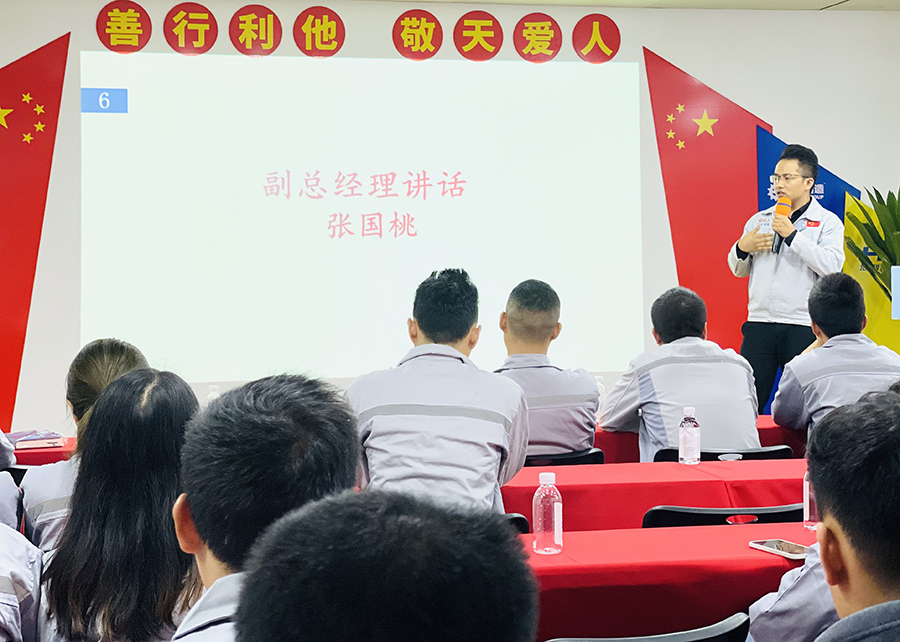 銷售經理蒲曾紅發表工作感言。蒲經理表示回首過去,匯利興更像是一個載著夢想和技能的學校,在這里品嘗奮斗后的甘甜,實現人生的目標,享受企業帶來的自豪。她表示在這八年的匯興生涯中,見證了公司的突飛猛進,見證了公司質的飛躍,讓我深知“唯奮斗者幸福”,一步一個腳印蓄勢向前、精進不息。 客服部經理石樂歡發表工作感言。首先石經理通過6個方向闡述部門上月進步情況,同時也進一步指出上月部門待加強要點,石經理表示我們要在現有基礎上發揚自身部門優點,提高客戶幸福指數,優化工作流程、強化工作細節,嚴于利己做好表率,創造高效率,使公司的服務再邁新臺階。 常務副總經理張國桃發表工作感言。張副總對2021年三季度工作進行回顧,對公司業績的增長表示肯定,分析了部分工作未完成的主要原因和關鍵要素,進一步對后期工作作了如下要求:一、銷售致勝,業績為王,全員營銷,加大績效產出;二、強化客戶幸福指數,為客戶創造效益;三、幫助新生力量,快速融入團隊;四、增強危機意識,確保安全生產;五、注重細節把控,強化責任意識,并進一步勉勵全體員工要做一個積極、有正能量的人,像太陽一樣溫暖有光、有力量。 總經理胡偉路發表工作感言。胡總經理用四個成語,“政從正來、智從知來、位從為來、財從才來”,詳細闡述了公司團隊和發展,并從組織與管理、人才與干部、創新與效率、安全與風險作了深度剖析,進一步勉勵全體員工要擰成一股繩,齊心協力向前走,堅持做一個自燃人,去點燃我們的夢想。為了我們更好的明天,一起去拼搏奮斗! 任重道遠,更需策馬揚鞭。一路走來,我們戰勝了一個又一個困難,沿著既定的目標健康而快速的發展,用我們的實際行動將我們的塔越搭越高!因為對匯利興人而言,只有不斷的朝前奮進,公司才能蓬勃發展,我們才能進步;只有不斷的創新,我們才能在激烈的競爭中脫穎而出,哪怕前方荊棘遍地,也絕不回頭!因為讓家變的強大是我們每個人義不容辭的責任!