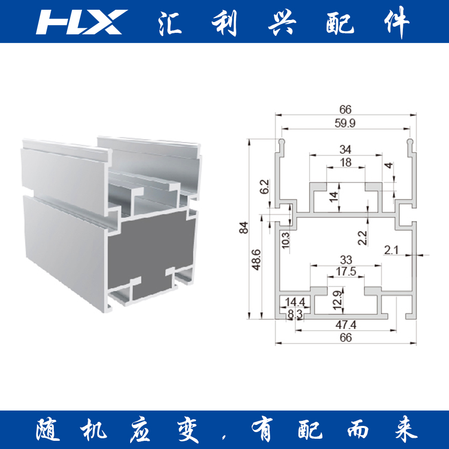 產品名稱:HLX-8466-115鋁型材 產品型號:38.1節距2.5/3倍速導軌